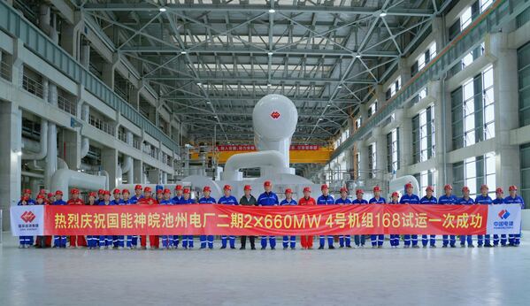 該項目是國家能源集團在華東區域布局的重要清潔煤電項目,也是安徽省“十四五”能源保障重點工程。自開工以來,在公司領導及兩級總部各部門的大力支持下,項目團隊秉持“創新、誠信、奮斗、多贏”的核心價值觀,堅持精細化管理、標準化施工,克服了設備供貨緊張、施工界面復雜等多重挑戰,高質量推進工程建設。池州二期項目部全體員工團結協作、攻堅克難,先后實現了廠用受電、鍋爐水壓試驗、汽輪機扣蓋、點火吹管、并網發電等多個關鍵節點一次成功,為機組整套啟動奠定了堅實基礎。
